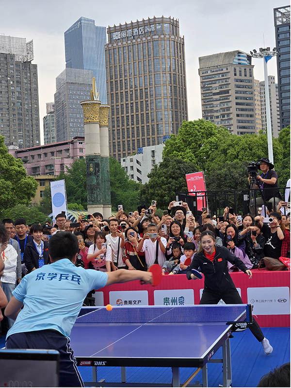 活动期间,“国球进校园” 专项活动先后走进贵阳市南明区都市路小学、贵阳一中,奥运冠军刘诗雯与青少年面对面交流、切磋球技,用榜样力量点燃青少年运动热情,推动乒乓球运动在贵州校园普及发展。全国 29 个省、市、自治区同步开展 “国球进公园” 主题赛事,形成 “百园齐挥拍、全民享乒乓” 的盛大景象,生动践行全民健身国家战略,彰显 “小球转动大球” 的体育精神与时代价值。