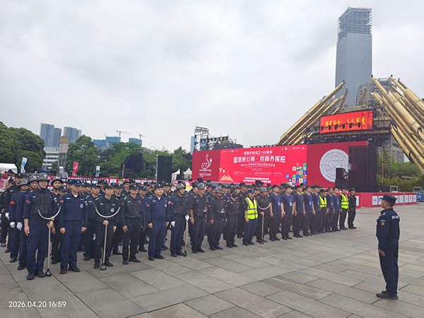 1.前置筹备,精准施策活动前,公司安保团队多次赴筑城广场实地勘察,结合启动仪式区、百台乒乓赛区、嘉宾通道、观众观赏区、非遗展演区等功能布局,量身定制专项安保方案,明确岗位分工、动线疏导、应急处置等核心工作,开展岗前培训与任务部署,确保安保工作无缝衔接。